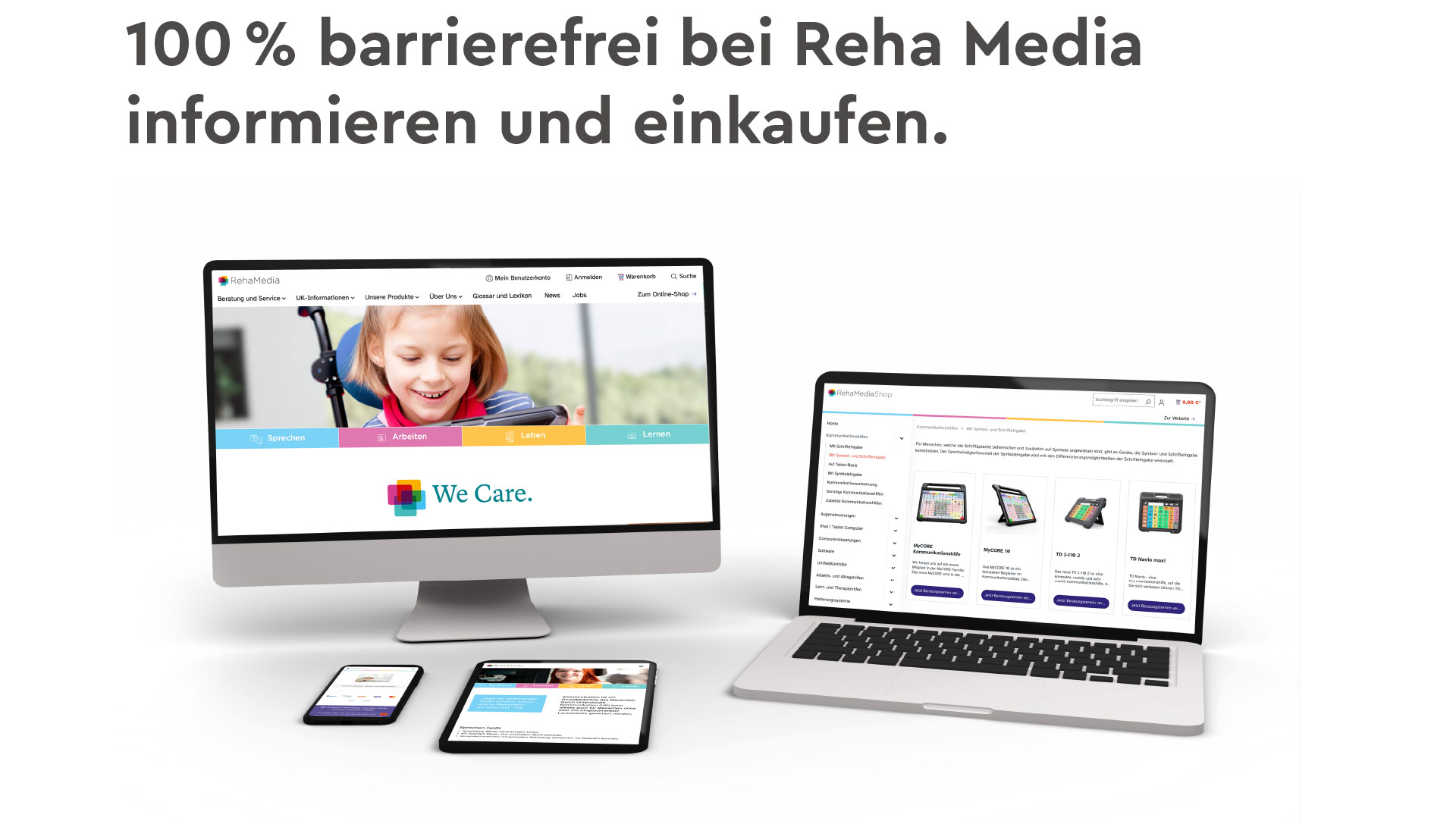 Internetauftritt und Online-Shop für unterstützende Kommunikationshilfen. Alles, was ein Auftritt braucht: